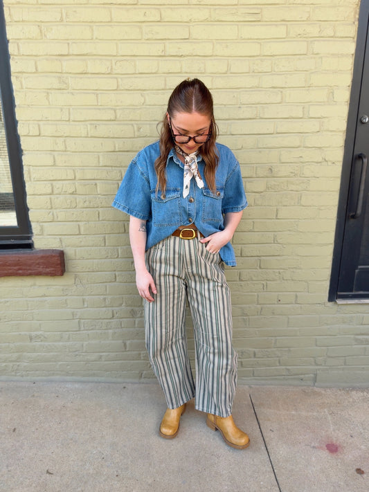 Matcha Stripe Barrel Jeans
