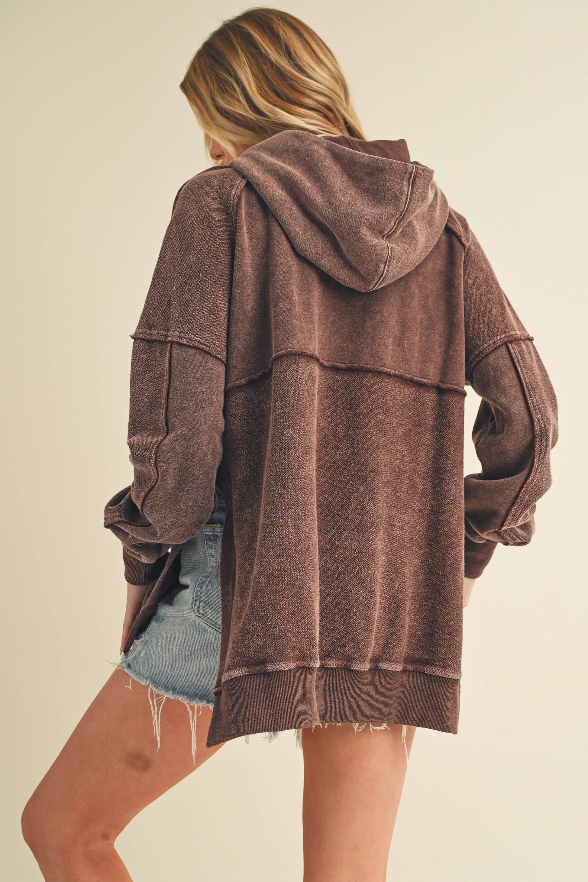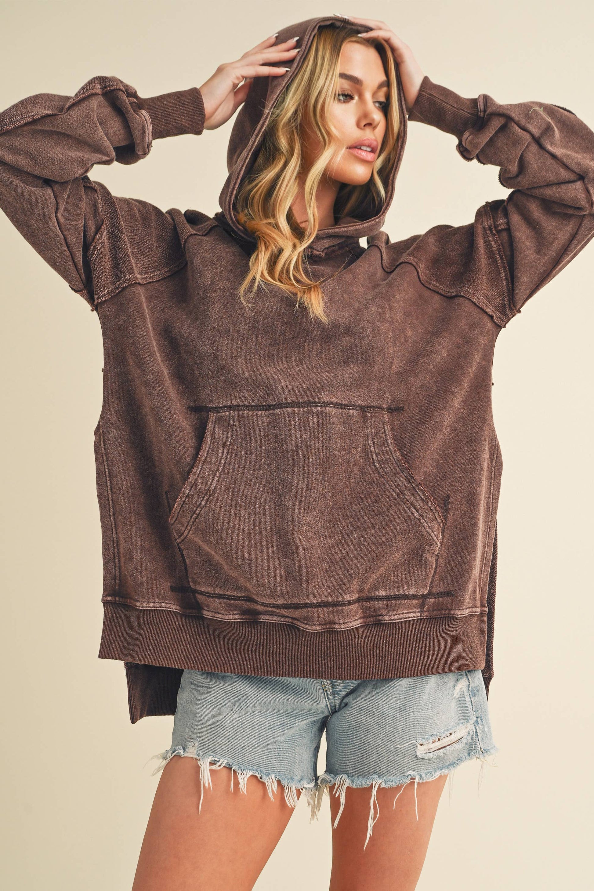Relaxed and cozy, Deb hoodie features a washed look for a lived-in feel, complete with a kangaroo pockets, side slits for laid-back comfort.