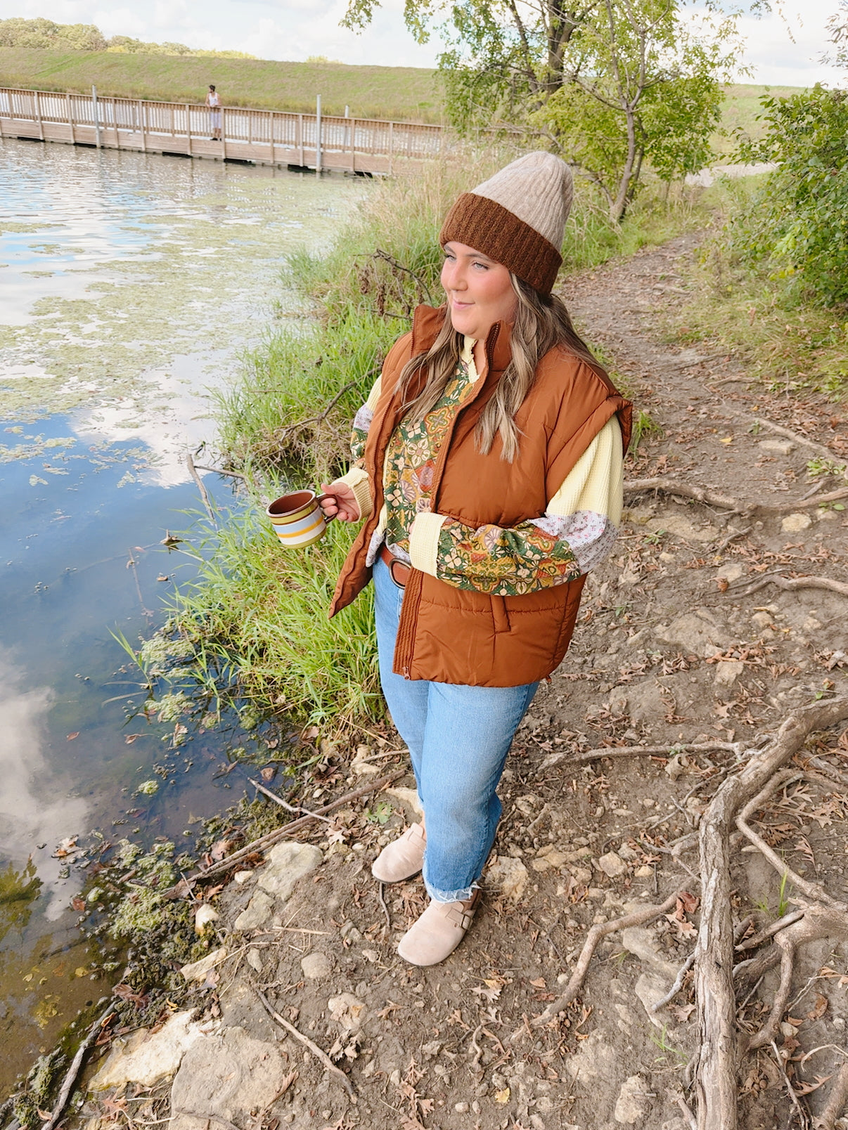 A statement piece in the Fall Fisherman Collection, this patchwork top blends rustic textures and vintage-inspired patterns. Designed with a cozy waffle knit base, floral accents, and bold tapestry panels, it feels like something collected from a lodge wardrobe or pieced together on a cabin retreat. Perfect for layering or standing alone as a heritage-inspired fall essential.