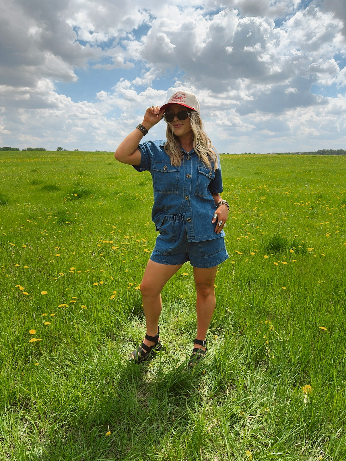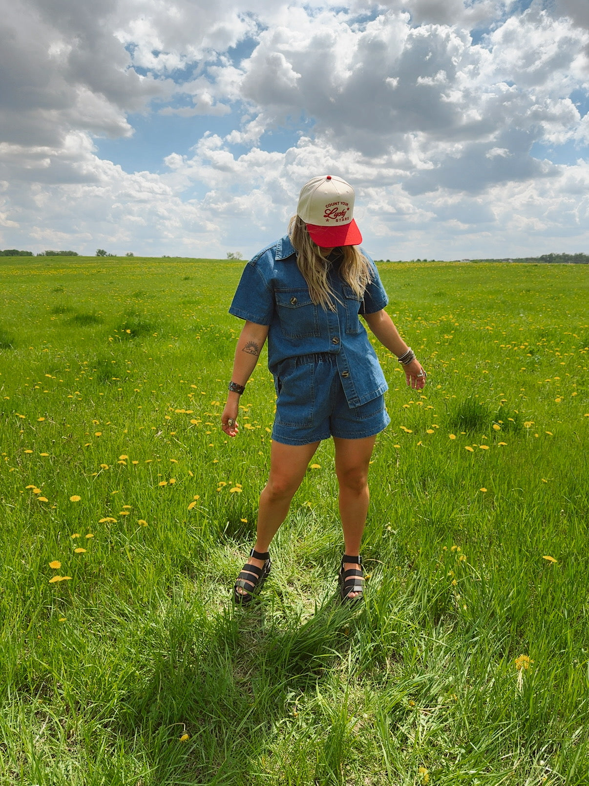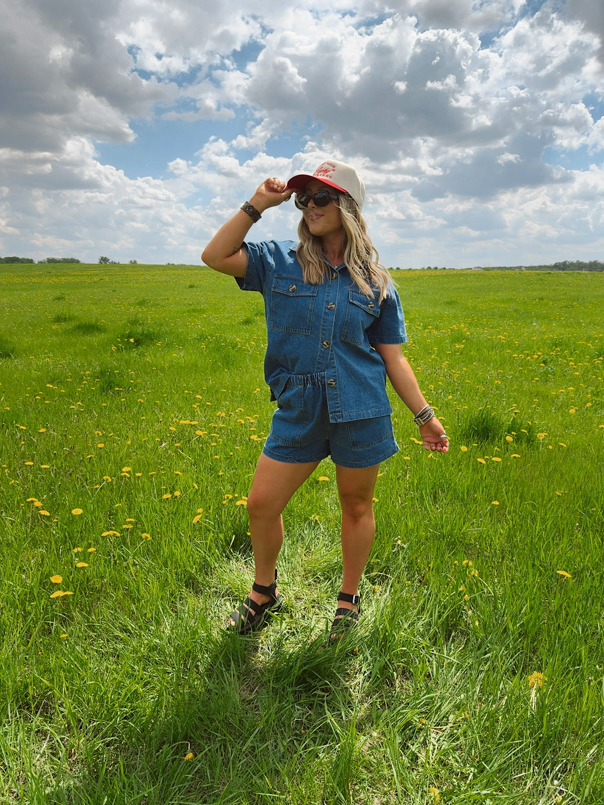 Effortlessly cool and endlessly versatile, the Denim Duo Set blends timeless style with modern comfort. Crafted from soft, high-quality denim, this matching set features a structured short-sleeve button-up top with utility-inspired chest pockets and relaxed-fit high-waisted shorts with an elastic waistband for an easy, flattering fit. Whether you're running errands or heading out for a casual brunch, this co-ord delivers laid-back polish with minimal effort. Pair it with statement earrings and a sleek bun for an elevated off-duty look.