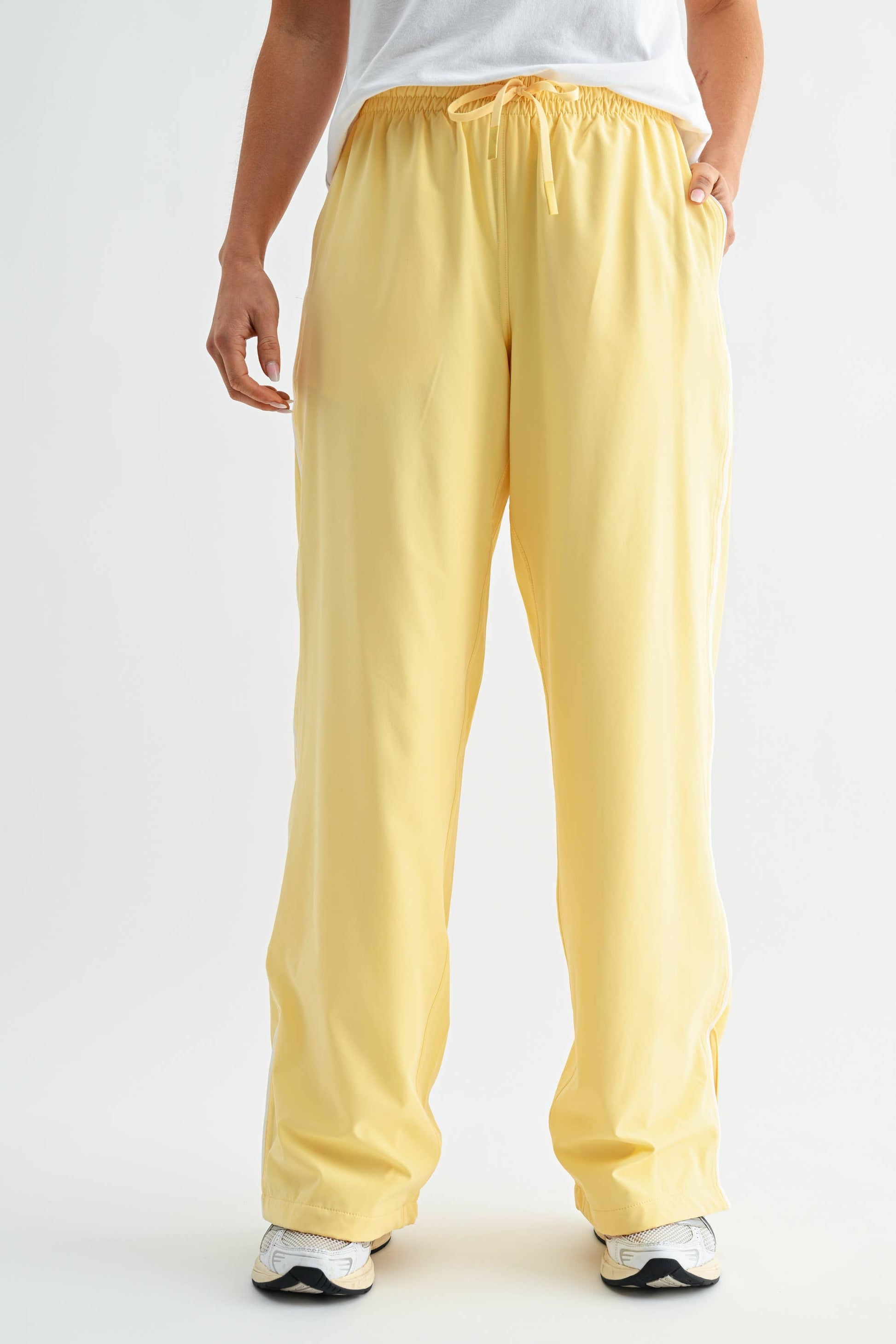Easy, everyday track pants with a clean straight-leg fit. Designed with a drawstring waist, sporty piping detail down the leg, side pockets, and a hem slit for added comfort and style.