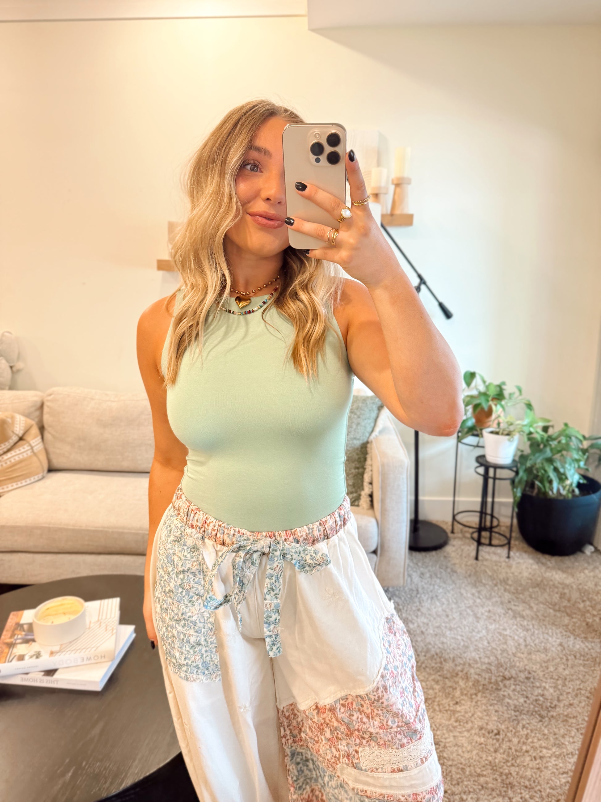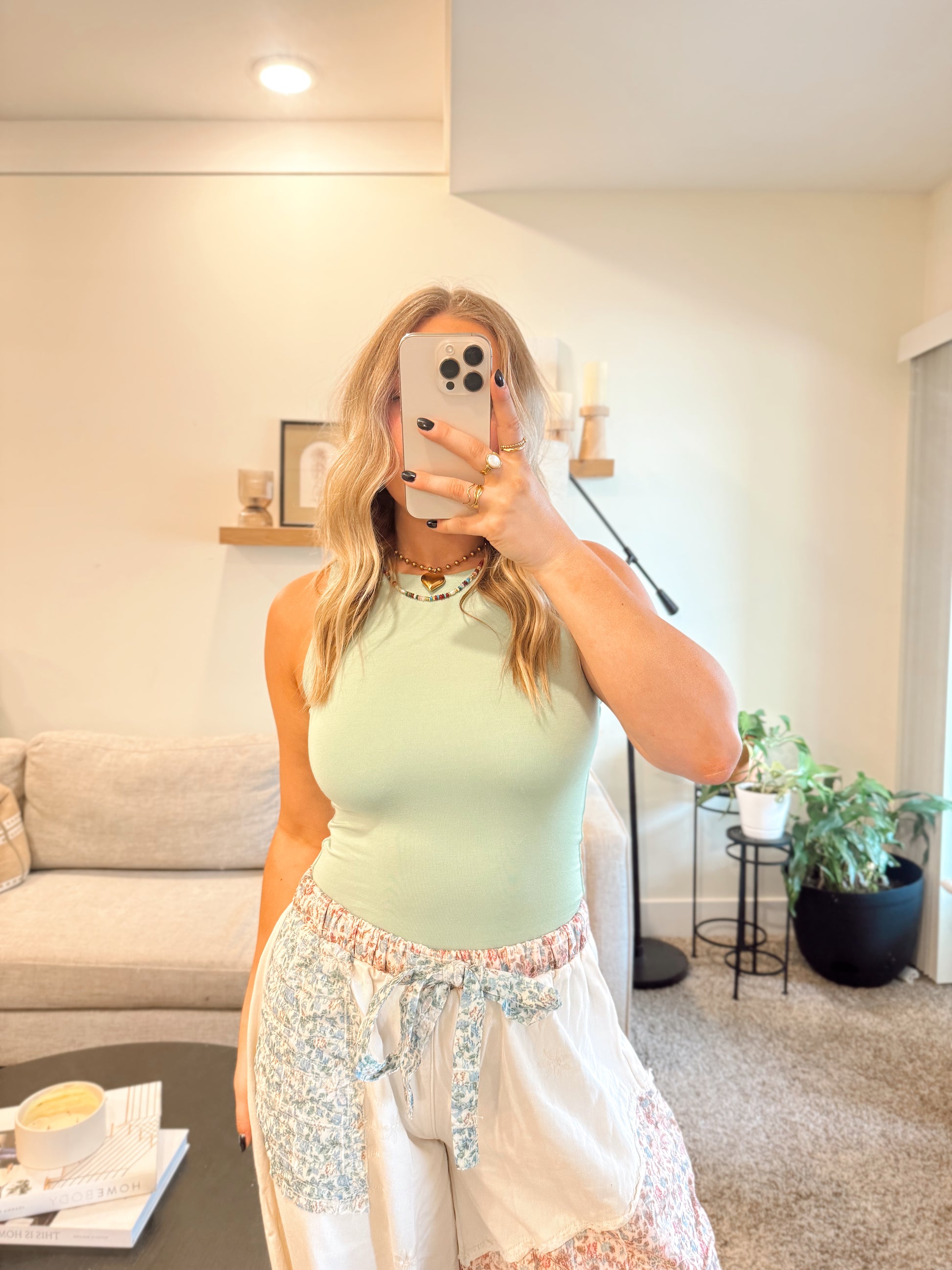 High Neck Staple Tank- Wasabi