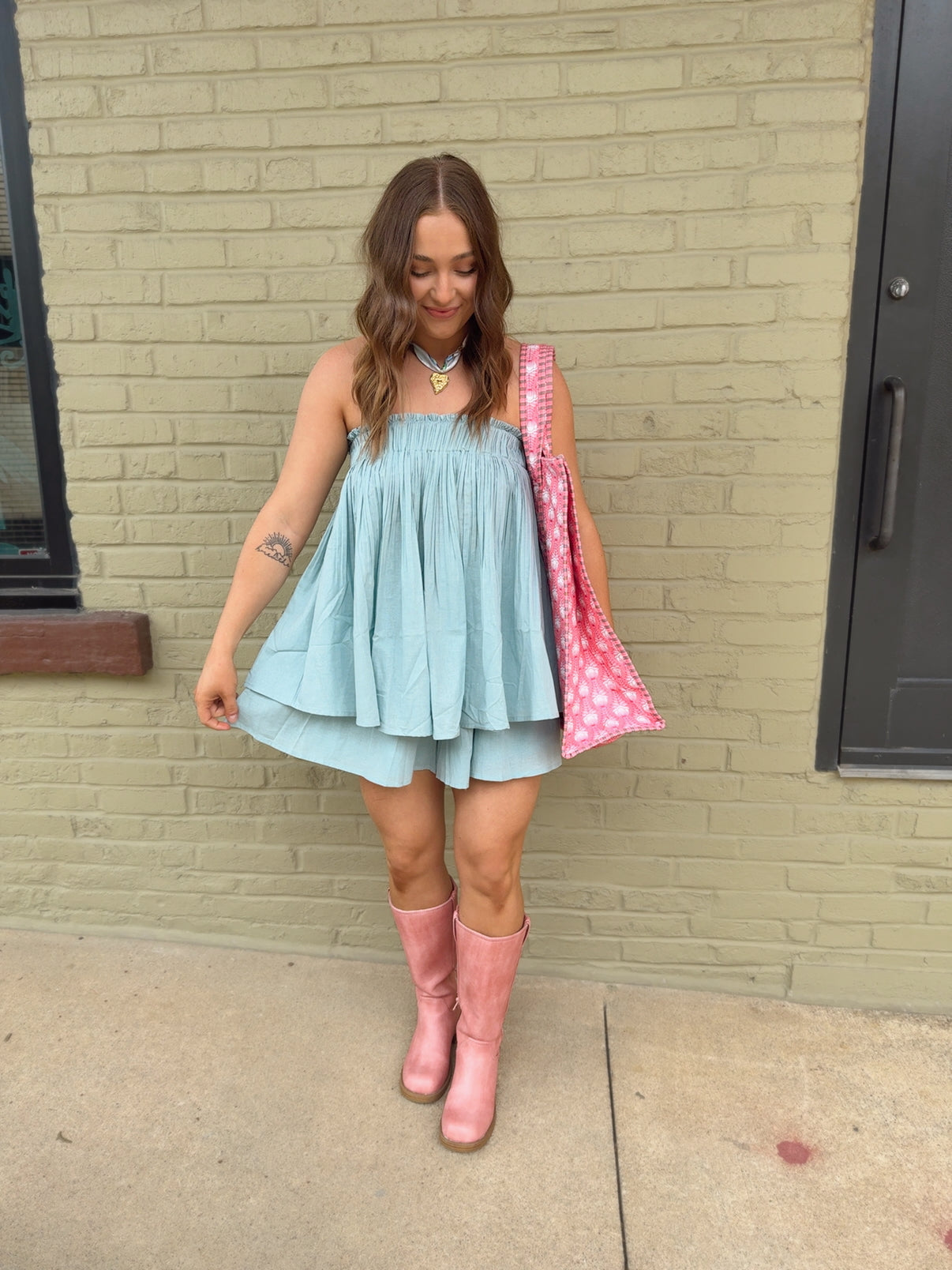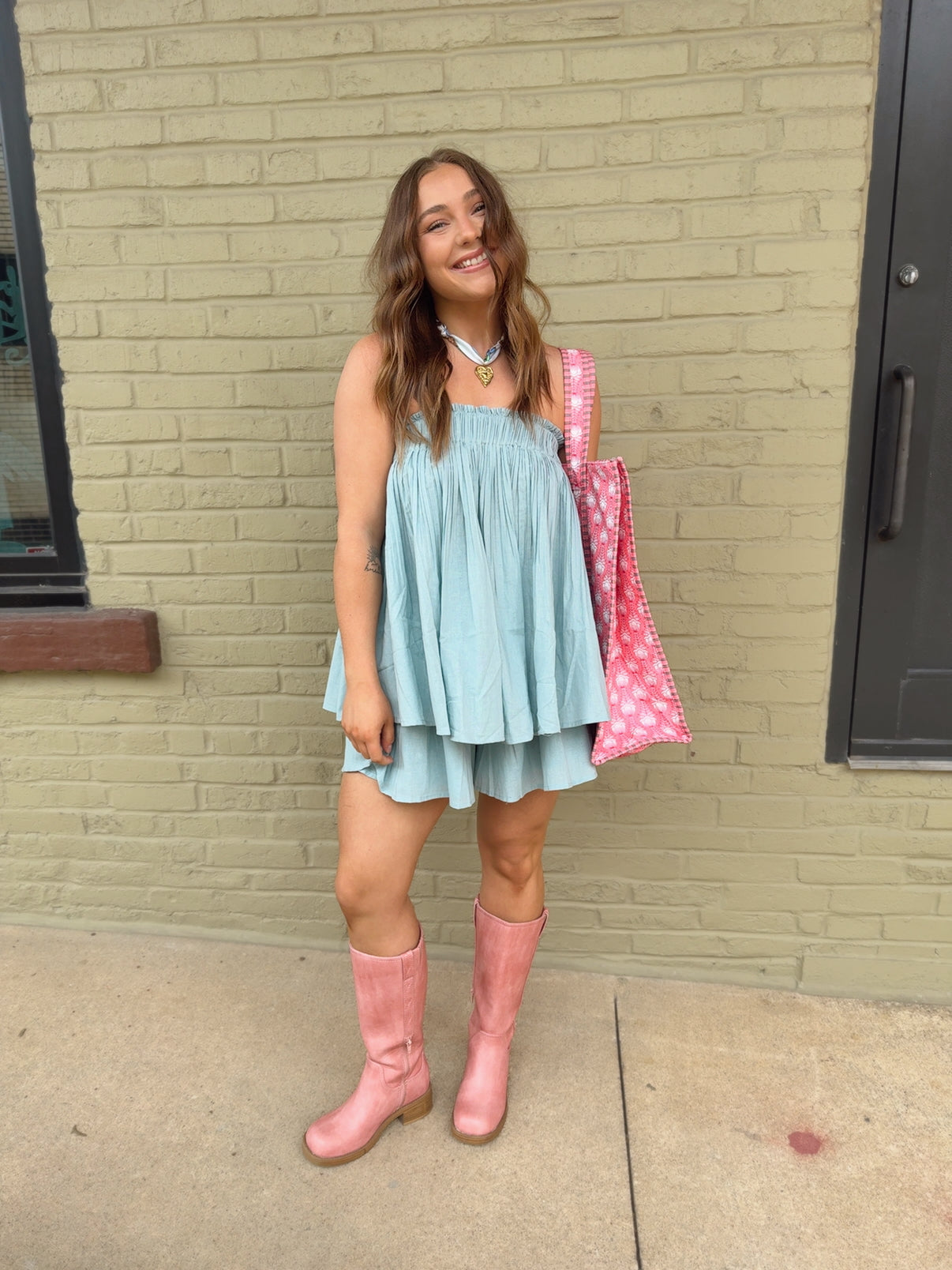 CRINKLED TUBE TOP AND SHORTS SET AND BACK CLIP
