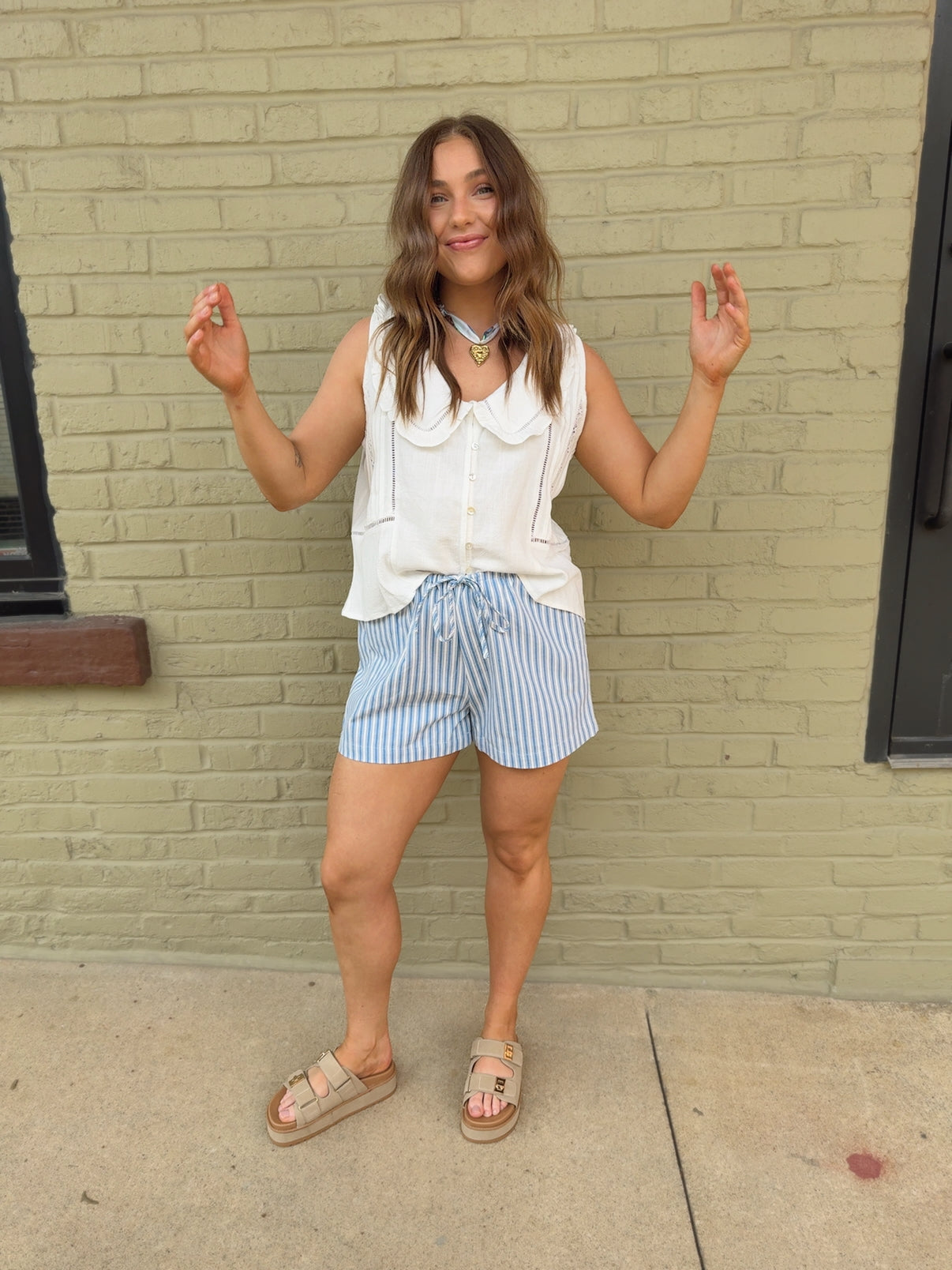 RUFFLE COLLARED BUTTON-UP TANK BLOUSE - FUNCTIONAL BUTTONS - SLEEVELESS, SCOOP NECK, EASY, COMFY, CASUAL, EVERYDAY,