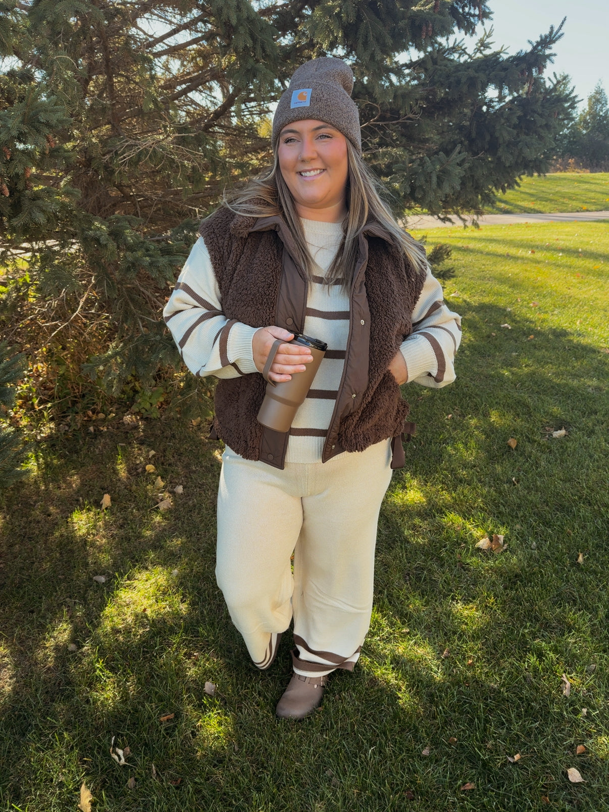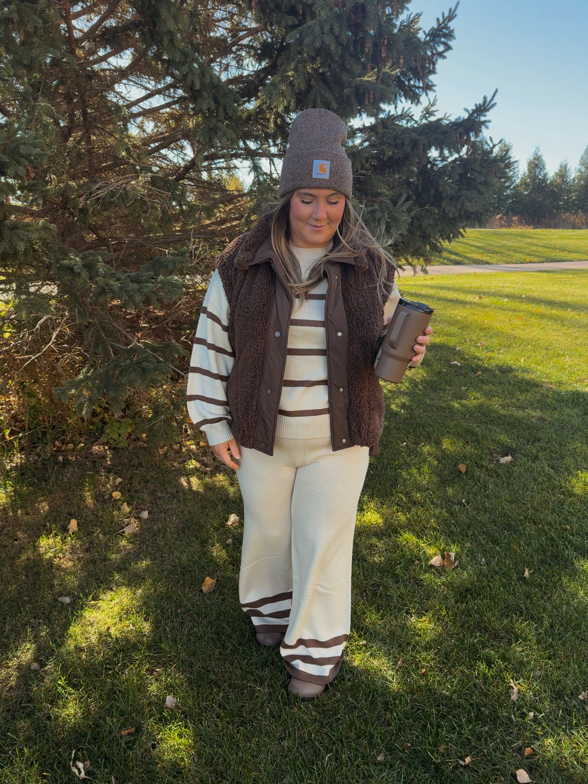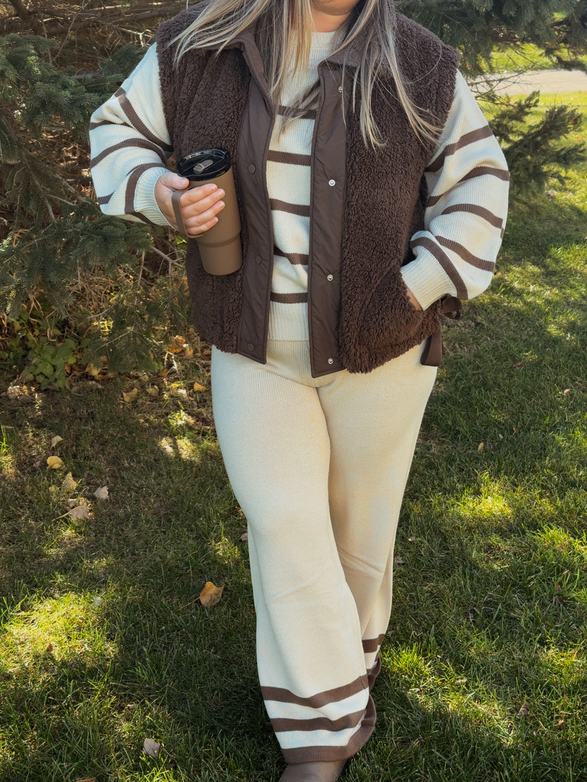 COZY STRIPED SWEATER&PANTS LOUNGE SET - ROUND CREWNECK - HIGH WAISTED - DRAWSTRING - WIDE FULL LENGTH - COMFY&LOOSE FIT